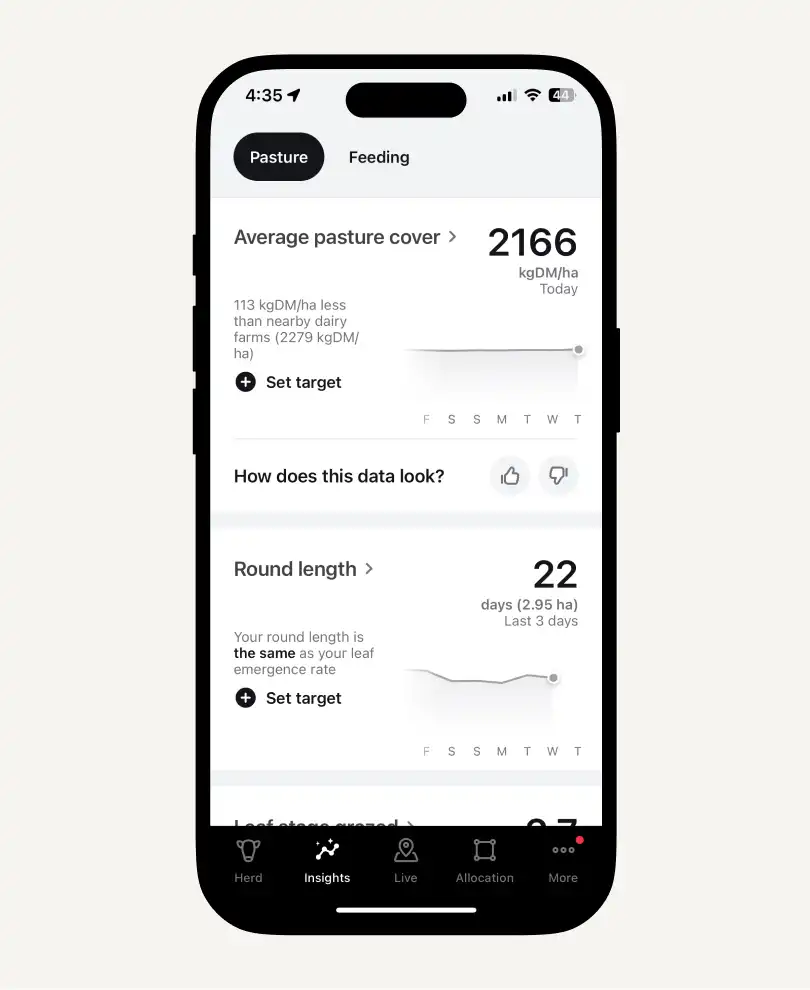 Create breaks, shift herds, and monitor animal and pasture performance with live data from the field. Thoughtfully designed with farmer experience at the heart, the Halter app takes advanced technology and makes it feel simple - delivering insights and enabling action.